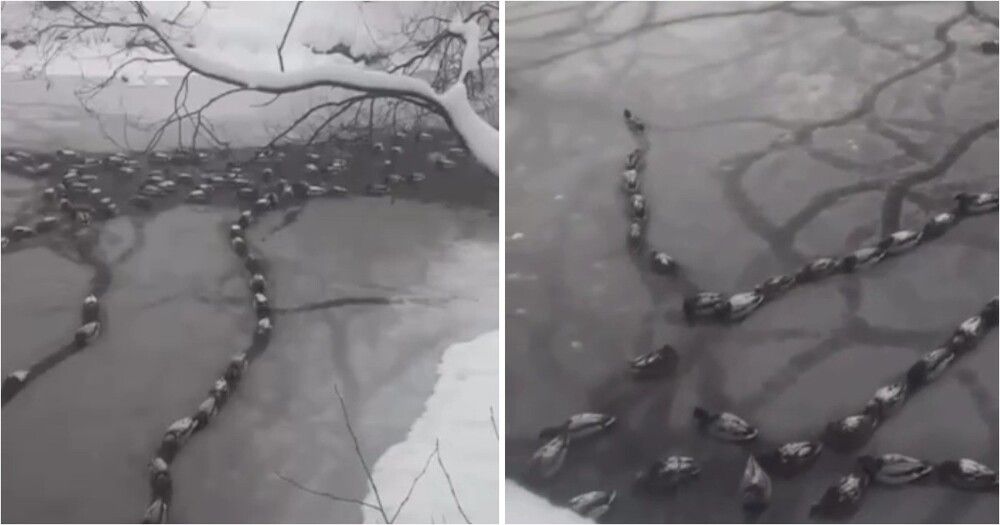 К оледенению прудов и небольших рек не были готовы и местные птицы. В соцсетях завирусилось видео, на котором десятки уток не могут проплыть через пруд из-за "пробок" из таких же уток.