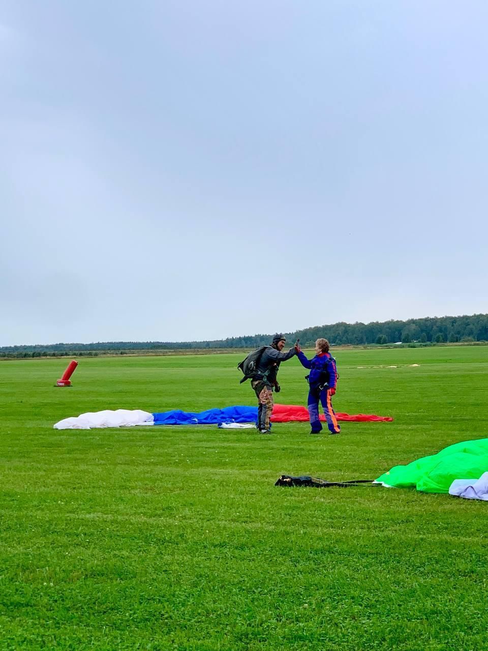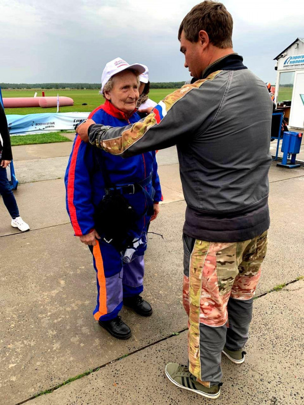 70-летняя жительница Подмосковья впервые прыгнула с парашютом. Пенсионерка много лет мечтала о прыжке и наконец решилась.