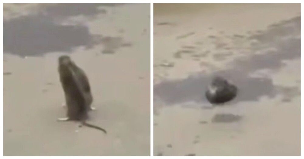 Две крысы решили выяснить отношения на парковке в Химках. Местный житель запечатлел поединок грызунов.