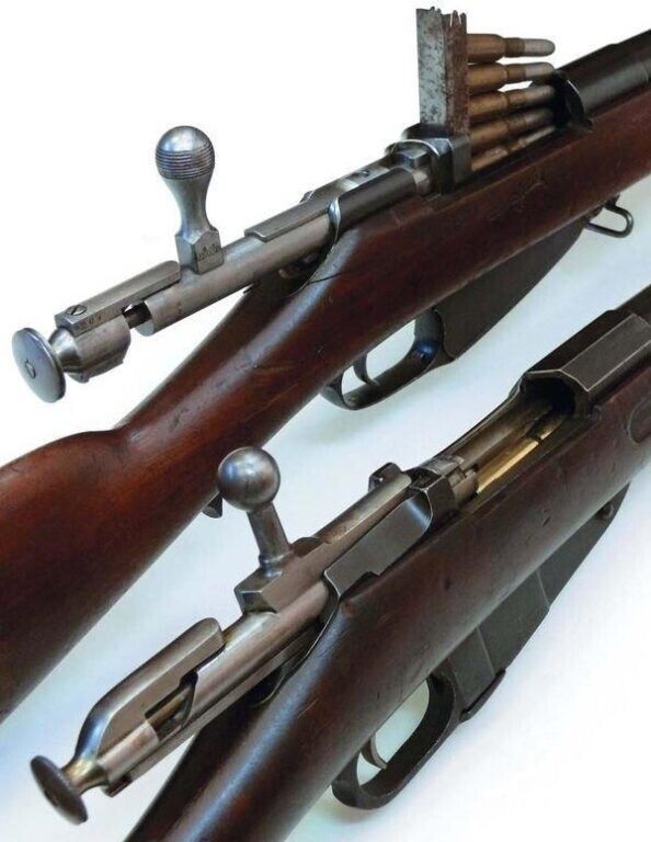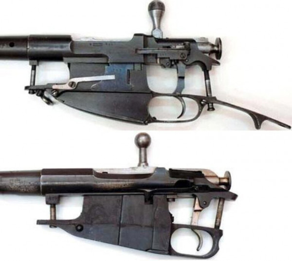 Разница в конструктивном исполнении отсечки патронов нагановской и мосинской систем видна невооружённым взглядомЗдесь также кроется один из мифов о "проигрыше винтовки Мосина". Войсковые Комиссии не имели права решать судьбу винтовок, в отличие от того же Оружейного Отдела или особых Комиссий, они лишь давали оценку систем по результатам войсковых испытаний, не касаясь технической стороны вопроса. Фактически данное голосование носило только ознакомительный характер для более высоких инстанций. По сути, на первом этапе конкурса винтовке Нагана проиграл один из первых вариантов винтовки Мосина, а из этого "исследователями" делались далеко идущие выводы о непригодности системы в целом для принятия на вооружение.Действительно, чисто внешне винтовка Нагана производит весьма приятное впечатление. Такой же идеальный баланс, который не нарушает пристегнутый штык, продуманный дизайн, хорошая прикладистость. Больше похожа на современную винтовку, чем на продукт дореволюционного оборонпрома. Все винтовки, участвовавшие в нашем тесте, включая конкурсные Мосина и Нагана, имели классический "трехлинеечный" спуск - мягкий с потягом, хотя в некоторых источниках встречаются данные о "дубовом" характере спуска конкурсных винтовок.При этом по механике винтовка Нагана полная противоположность винтовке Мосина. Восхваляемая "исследователями" нагановская затворная группа сделана с настолько малыми допусками, что заставляет работать затвором при перезаряжании с максимально возможной скоростью, иначе его банально "прикусывает". Причем "наша" винтовка Нагана прошла полный цикл войсковых испытаний в 1890-91 гг., т.е. из нее сделано более 10000 выстрелов.Такие трюки, как открывание и закрывание затвора Мосина двумя пальцами, с затвором Нагана просто не получатся. И это в "тепличных" условиях, что было бы в условиях войны, остается только догадываться.