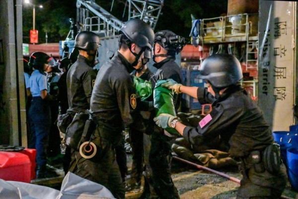 Энди Чан Тин-Чу, представитель полиции, заявил журналистам: "Мы установили, что этот объект - бомба времён Второй мировой войны".Около шести тысяч человек из почти двух тысяч домов получили срочное предписание покинуть свои жилища из-за "чрезвычайно высокого риска", связанного с обезвреживанием боеприпаса.
