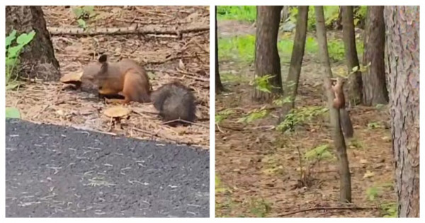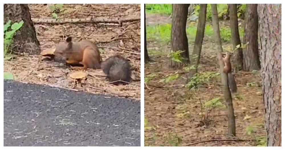 Люди встретили на "Уфимском ожерелье" белку, решившую полакомиться грибами. На размещенных в сети кадрах грызун забирается с грибом на дерево и оставляет добычу.