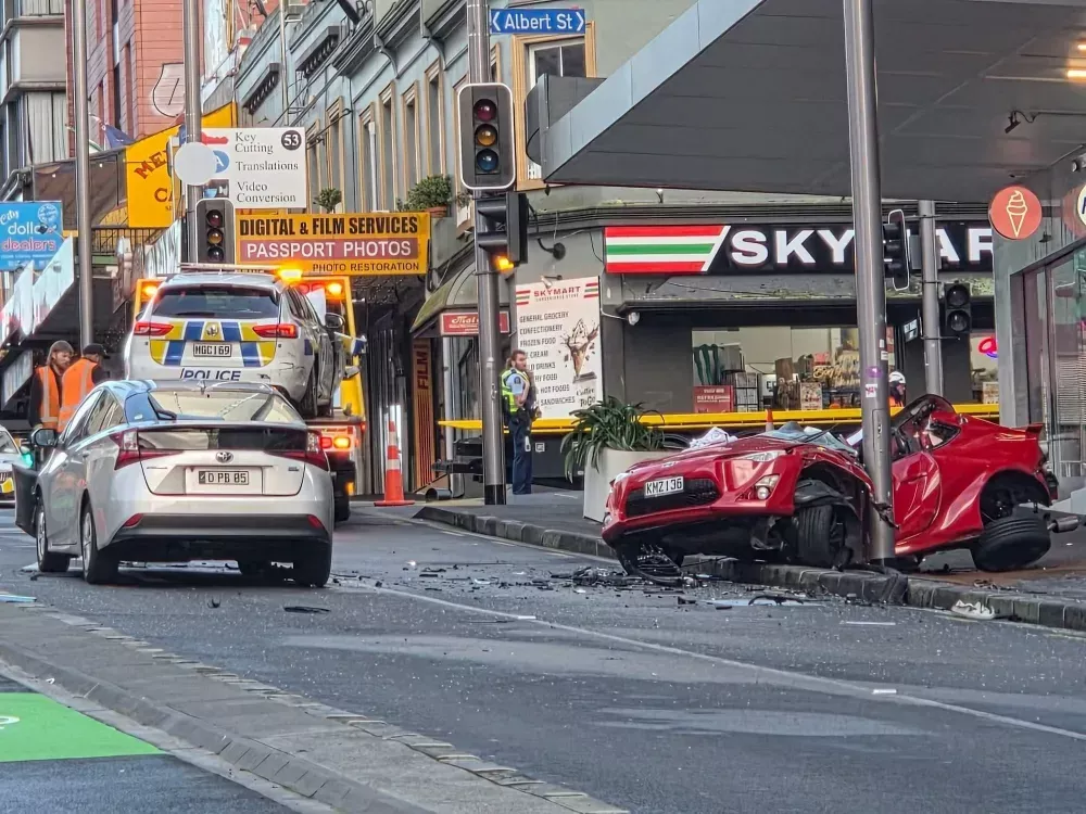 Полиция Окленда, Новая Зеландия, опубликовала ролик, в котором водитель "Тойоты" превысив скорость и чуть не сбив пешехода зацепил стоящий полицейский автомобиль и влетел в столб. К сожалению, само ДТП осталось за кадром.