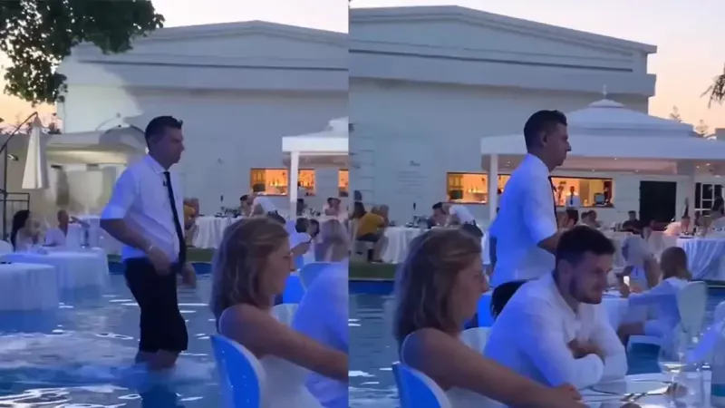 В Италии есть ресторан, где часть столиков стоят в бассейне. Гости сидят по колено в воде, а официанты ловко перемещаются между столиками, закатав штаны.