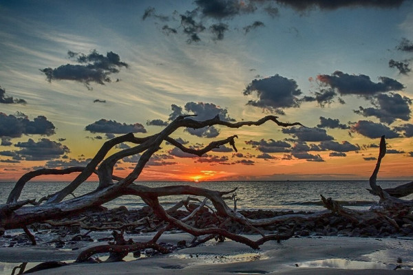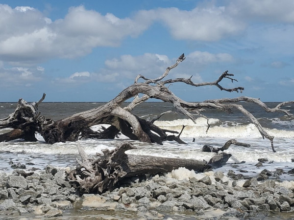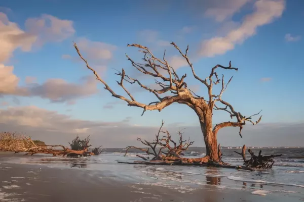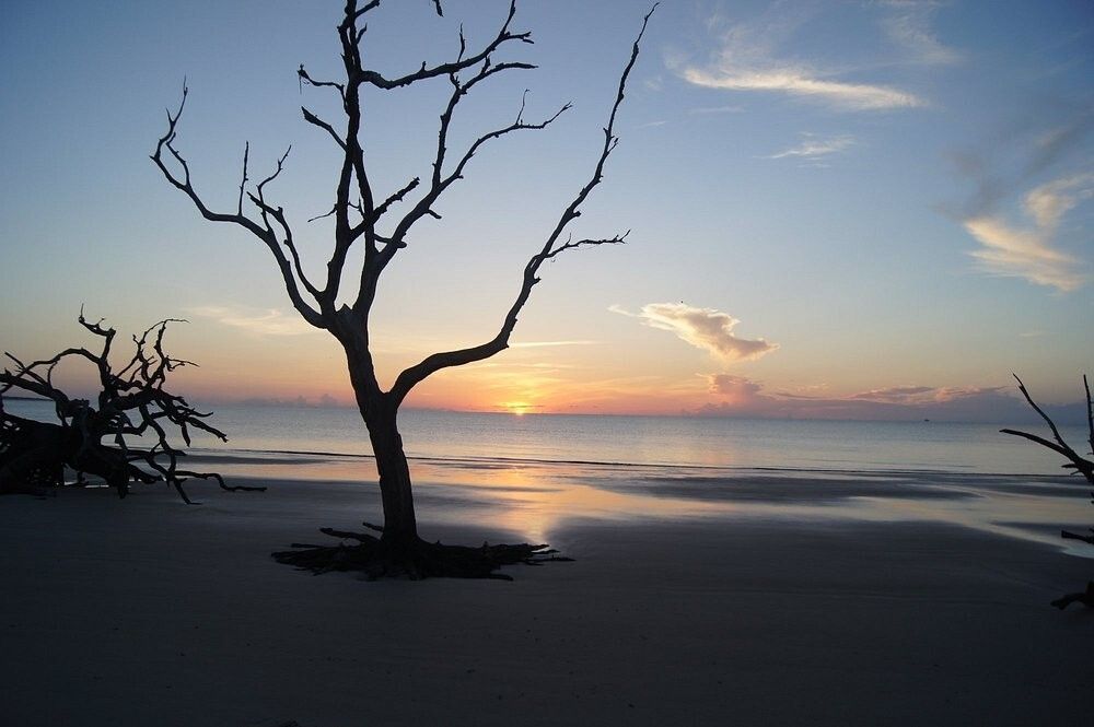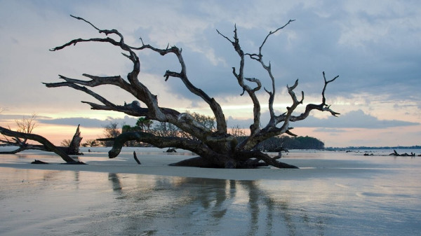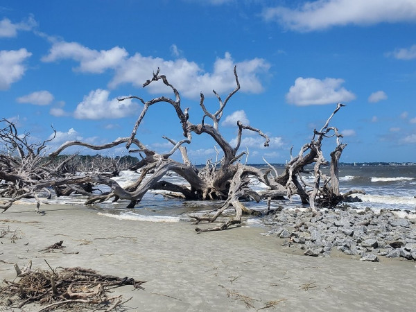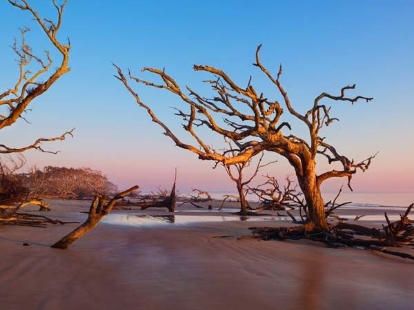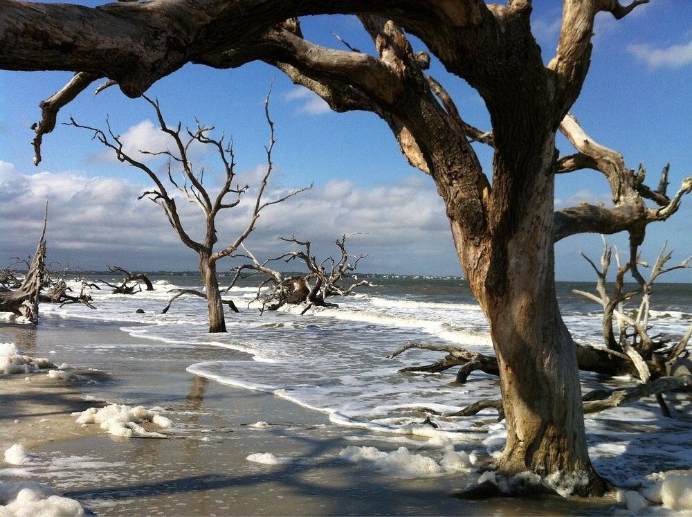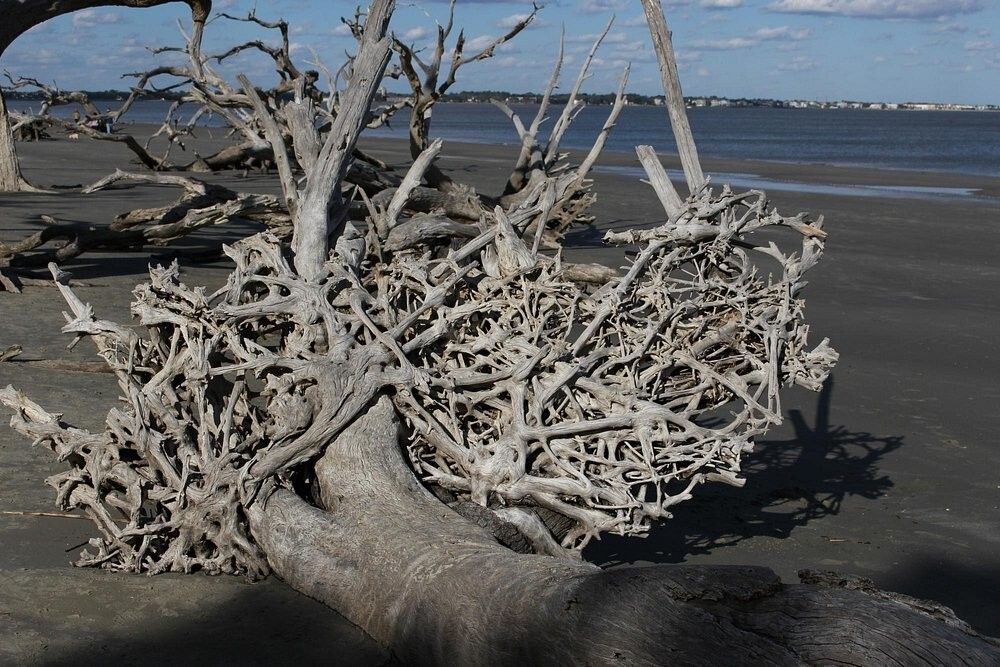 На севере острова Джекилл, самого маленького барьерного острова Джорджии, находится тихий и живописный пляж, больше похожий на художественную инсталляцию.
