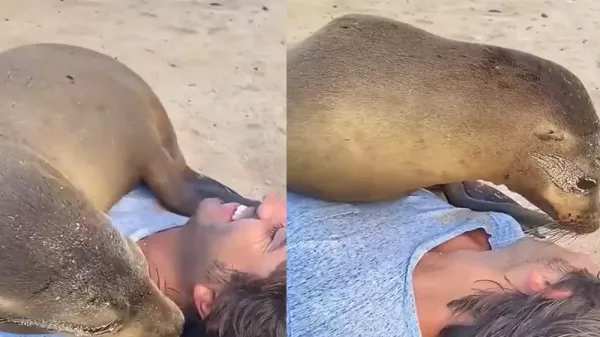 На пляже в Эквадоре случилось тихое вторжение в личное пространство отдыхающего на пляже человека. Из океана на сушу высадился десант морских котиков, действовавший с наглостью, не оставляющей сомнений в их праве на эту территорию. Один котик просто устроился у ног человека, но его компаньон пошел в наступление - без предупреждения он применил тактику тотальных объятий, устроившись на груди у отдыхающего.