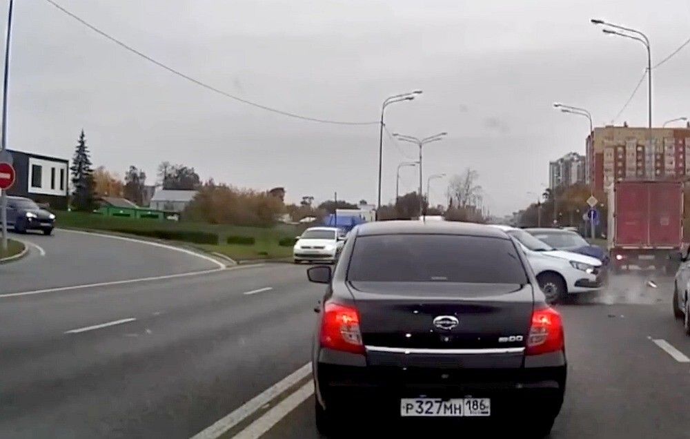 Сложно даже предположить, что можно было делать в машине, чтобы устроить такое ДТП. Тюмень, улица 50 лет ВЛКСМ. Повреждено 3 автомобиля.