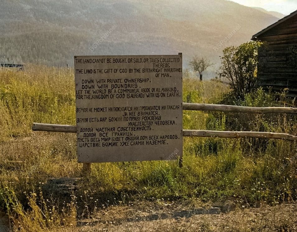 На фотографии - группа духоборов, русских сектантов-мирян, переселившихся из имперской России в Канаду в поисках свободы вероисповедания и уклонения от военной службы. Около 1908-1912 годов тысячи духоборов обосновались в Британской Колумбии, где получили земельные участки от канадского правительства. К 1915 году они уже активно осваивали новую родину: строили дома, возделывали землю, создавали общинные фермы.