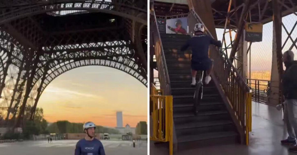 Француз установил новый мировой рекорд — за 12 с половиной минут поднялся на Эйфелеву башню на велосипеде