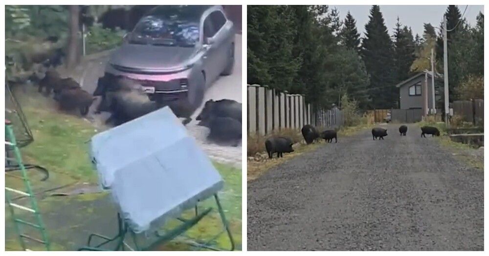В последнее время жители Ленобласти и питерских окраин замечают новых и крайне нахальных соседей - лесные свиньи носятся стадами по дорогам, дворам, хрюкают и пугают всех подряд.