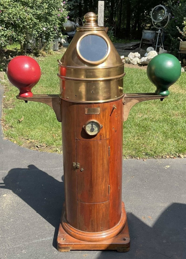 Нактоуз - защитный ящик (или тумба) для судового магнитного компаса и других навигационных приборов. Он оберегает оборудование от воздействия внешней среды и может иметь источник света. Поскольку металлические детали корабля искажают показания компаса, внутри нактоуза устанавливают девиационные магниты для частичной компенсации этих помех, а оставшуюся погрешность рассчитывают и учитывают при прокладке курса.По бокам у него - шары из магнитомягкого железа, уменьшающие девиацию, то есть отклонение компаса от правильного направления, вызванное корабельным железом.