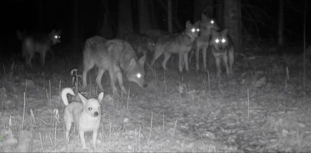 По интернету гуляет шокирующая новость: пропавшего чихуахуа обнаружили в стае диких волков! Причем не в качестве закуски, а как полноценного члена стаи! Подтверждением тому стали фотографии с фотоловушек в лесу, на которых микропёс уверенно держится среди огромных лесных хищников. Но как такое могло произойти?