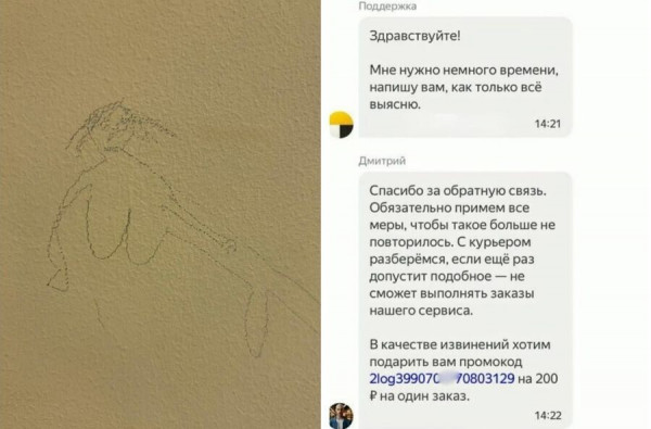 Жильцы многоквартирника пожаловались на художества в поддержку Яндекса. В сервисе доставки пообещали "разобраться" и в качестве извинений накинули промокод на 200 рублей. Однако, кто будет разбираться с грудастой фреской на стене - не уточнили.