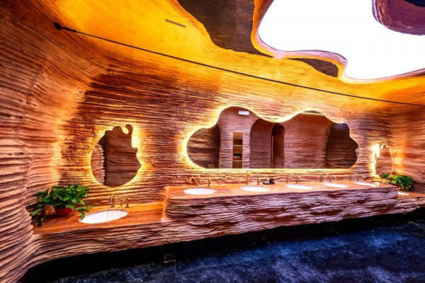 Все унитазы "умные", а на стенах висят мониторы, которые показывают свободные кабинки, чтобы к вам никто не ломился. Плюс есть зона отдыха с кофемашиной и напитками, если вдруг зашли с другом/подругой, а они "засиделись". Находится на ночном рынке Дуньхуан. И самое классное - он совершенно бесплатный.