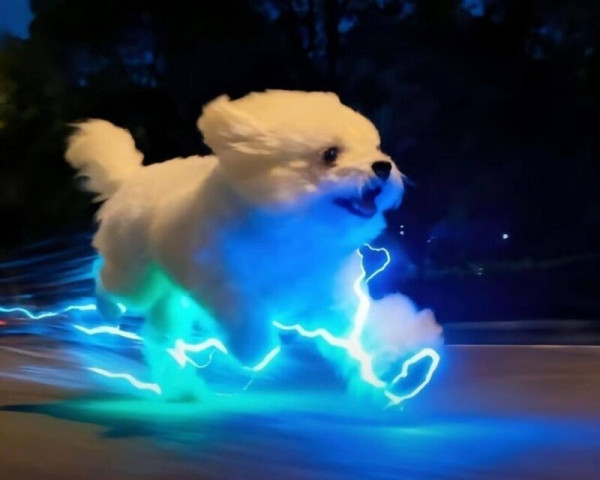 Собака с белоснежной шерстью и светящимися кольцами на лапах выглядит как суперпёс из кинокомикса. Видео уже собрало миллионы просмотров