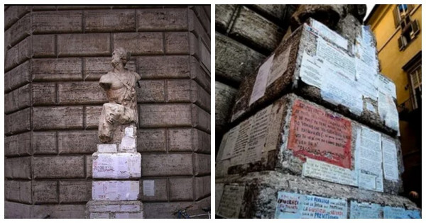 Самая известная из них - повреждённая эллинистическая статуя Пасквино, найденная в XV веке. В День Святого Марка кардинал устраивал у её подножия литературный конкурс, но горожане стали оставлять едкие записки и после его окончания. Так Пасквино приобрёл свой голос.