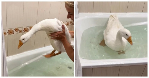 В последнее время россияне всё чаще заводят в квартирах гусей вместо привычных кошек и собак. Хозяева отмечают, что птицы отлично справляются с охраной жилья, "будят с утра лучше любого будильника" и создают "атмосферу деревни" в городской квартире. В видео девушка продемонстрировала, как проходят водные процедуры у её питомца.