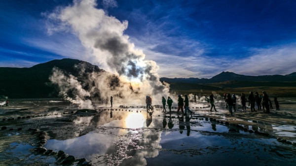 Вода у жителей таких городов была привозная, либо они добывали ее туманоуловителями - обычными сетями, натянутыми меж столбов. На их ячейках оседали капли тумана, которые потом конденсировались и стекали в специальные желоба. Значительно усовершенствованные, такие приборы существуют и поныне. Следующая достопримечательность Атакамы - долина гейзеров Эль-Татио, самая высокогорная в мире и третья по количеству активных струй. Ее посещение доступно не каждому из-за высоты 4300 метров над уровнем моря. Зато к услугам добравшихся не только фонтаны воды и пара, но и многочисленные термальные источники, в которых можно искупаться. Температура там вполне комфортная и на любой вкус: от 25°С до 40°С.