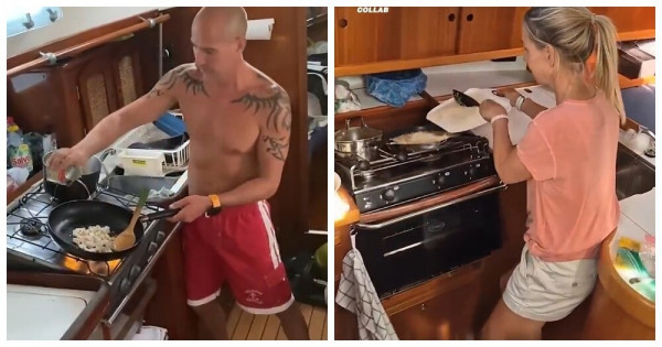 Пока судно поднимается на волне или резко наклоняется, сковорода и кастрюля остаются на месте. Так повара могут спокойно готовить даже при сильном шторме - и ничего не выливается!