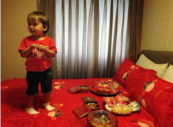 Отбор "катающихся" мальчиков был строгим: им должно было быть от пяти до шести лет, и обычно они были из семьи жениха. Хотя сейчас, если такого ребенка не находится, возрастной ценз можно расширить (иногда до странного). Некоторым важен возраст ребенка, а некоторым - степень родства. Тут много разных школ "исповедуют" хранители китайских традиций. Кровать тоже готовят - выкладывают из фиников или арахиса иероглифы с надписью "сын" или "скорое рождение счастливого ребенка" и тому подобное. Во время катания мальчик должен следить, чтобы эти предметы не рассыпались, что символизирует нерушимость любви и благополучия молодоженов.