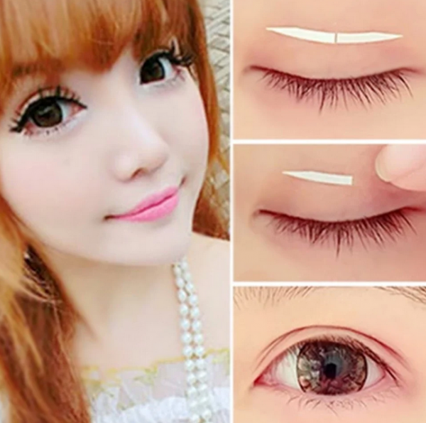 Просто приклейте прозрачный тейп на верхнее веко, каждый день сами делая себе складку. Очень популярно в Китае, если вы видите девушку в косметике и с двойным веком, скорее всего у нее тейп.