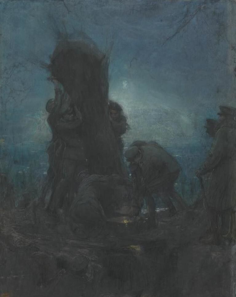 Под покровом ночи, приглушаемый грохотом артиллерийской канонады, сапёрный расчёт выходил на операцию по подмене. Настоящее дерево аккуратно спиливали, а на его место водружали подделку.