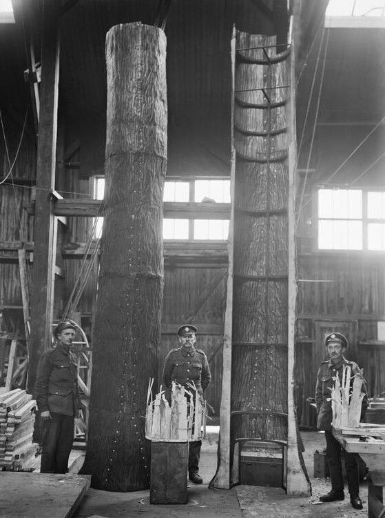 Идея принадлежала французам, которые вскоре обучили этому искусству британских союзников. Её суть - это камуфляжные деревья - специальные наблюдательные посты, искусно замаскированные под настоящие деревья. Их создателем был французский художник Люсьен-Виктор Гиран де Севола, возглавлявший соответствующий отдел во французской армии.
