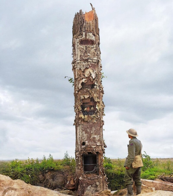 Выбирали уже мёртвый, изуродованный взрывами ствол, идеально расположенный возле линии окопов. Его тщательно фотографировали, изучали и замеряли с разных ракурсов. В глубоком тылу, в секретных мастерских, создавали его полую стальную копию.