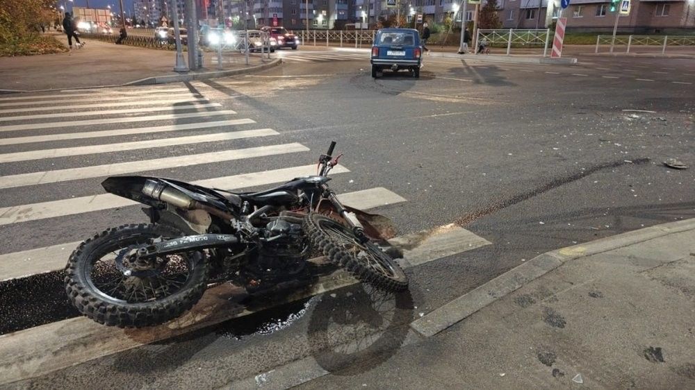 Вчера вечером в Красном Селе сошлись водитель "четвёрки" и 25-летний мотоциклист на кроссовом "Авантис ФХ 250". Пострадавшего увезли в больницу. По предварительным данным ему ампутировали ступню.