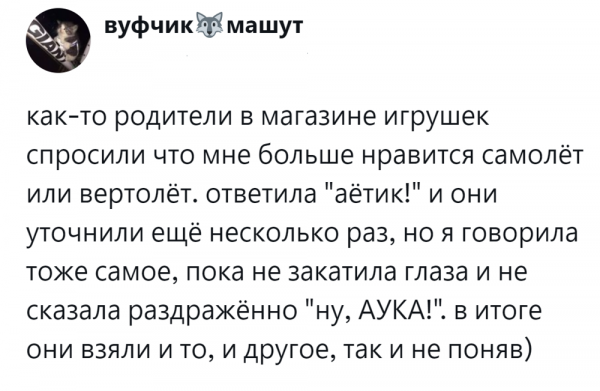 А ваши дети или вы сами выдавали какие-нибудь подобные словечки, которые вошли в семейную историю?