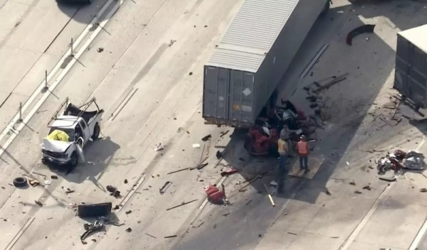 Кадры из кабины большегруза, который в минувший вторник протаранил по меньшей мере семь машин на шоссе I-10 в Онтарио, США. Погибли три человека, еще четверо получили травмы. За рулем грузовика был 21-летний нелегальный мигрант из Индии, который, по предварительным данным, находился в состоянии наркотического опьянения.
