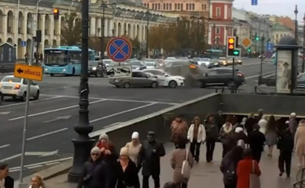 Эпичная авария из пяти машин произошла в центре Питера. Водитель "Ауди" решил проскочить на красный и устроил массовое ДТП: в него въехали по две машины с каждой стороны, а сам водитель перевернулся от столкновения. Также пострадала женщина.