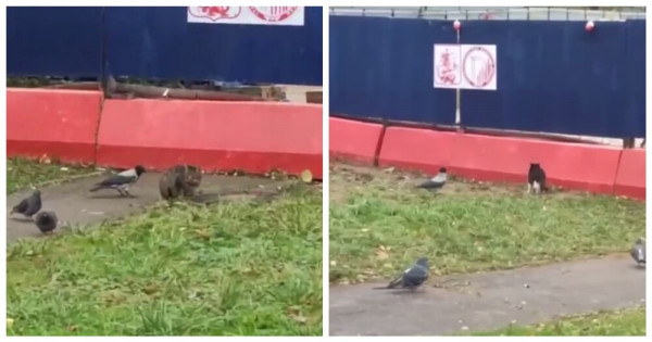 Житель Москвы запечатлел ворон, которые задирали дворовых кошек. Птиц интересовали хвосты пушистых хищников.