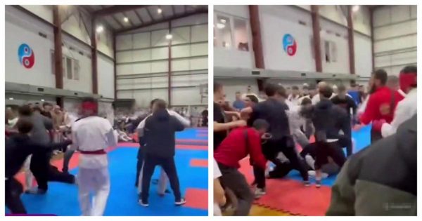 Массовая драка произошла на чемпионате ХМАО по рукопашному бою. Потасовка началась после того, как один из зрителей выбежал на площадку и попытался ударить участника соревнований.