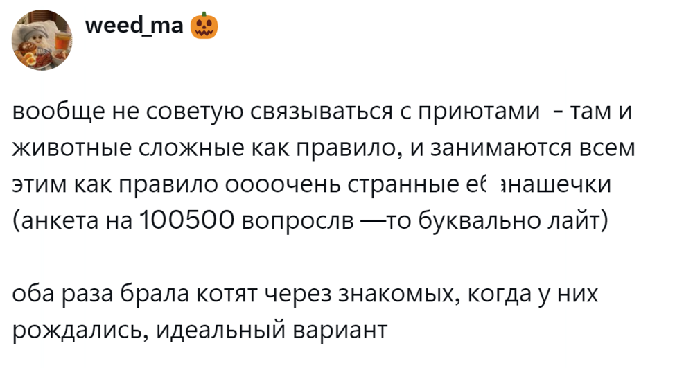 Как думаете, обосновано ли такое количество вопросов? Это попытка защитить питомца? Или приютам надо быть проще и радоваться, что животных вообще забирают в семью?