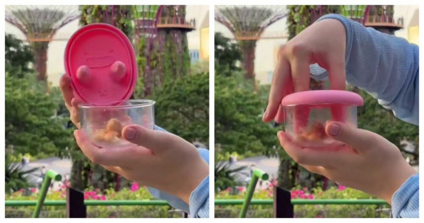Крышка контейнера, позволяющая есть различные закуски и не пачкать пальцы. Необходимо просунуть два пальца в специальные отверстия в крышке и можно наслаждаться любимой едой.