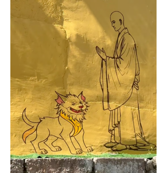 Собачьего бога зовут Дитинг, и на весь Китай в его честь стоит всего одна пагода, посвященная собакам. Стоит она в провинции Аньхой на горе Цзюхуа. Потому сюда едут китайцы со всех сторон вместе со своими псами, чтобы получить благословление на защиту и удачу для питомца. Перед статуей собачьего бога нужно положить еду, а поводок вашего пса положить в пепел благовоний перед статуей (взять с собой немного благости то есть. По примете это такая защита, чтобы пес не сорвался с поводка и не потерялся).