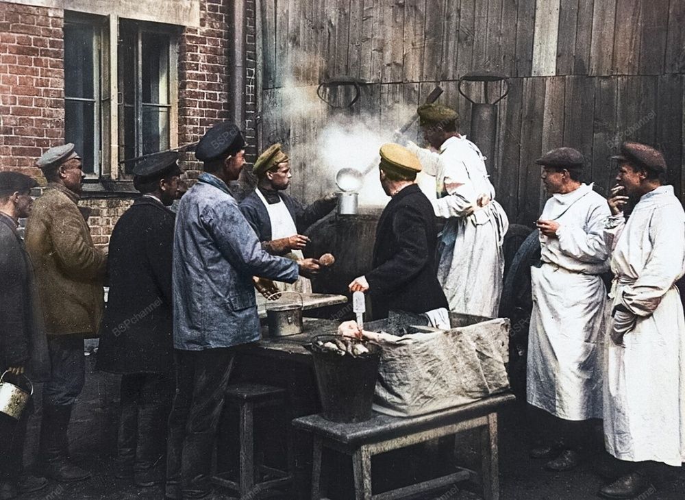 Раздача бесплатных обедов на вокзалах Москвы. Весна 1918 года.