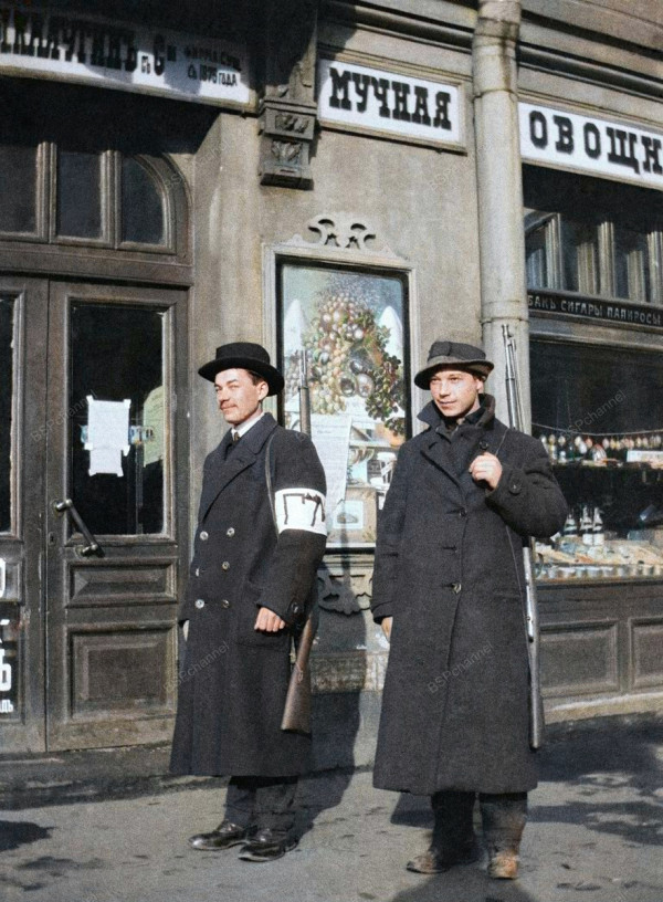 Городская народная милиция на Каменноостровском проспекте. Петроград, 1917 год.