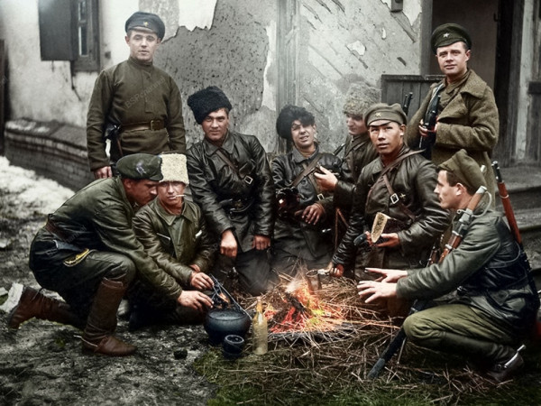 Обед красноармейцев у костра. Южной фронт, 1919 год.