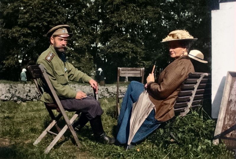 Арест императора и его семьи. Николай II с супругой в Александровском парке в Царском Селе. Май 1917 года.