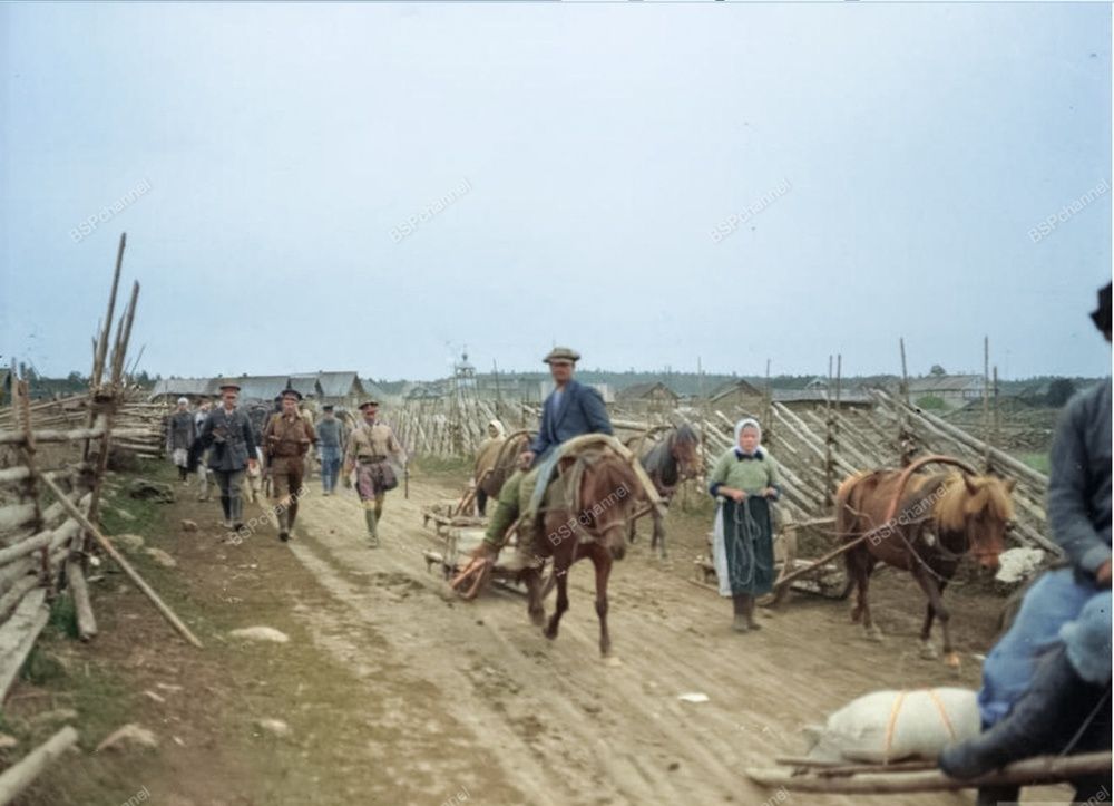 Обоз с провиантом англичан движется в сторону карельской деревни Святнаволок, 1919 год.
