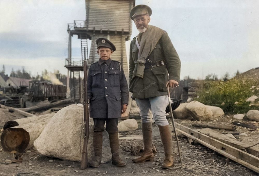 Русский 13-летний подросток и капеллан британской армии. Мурманск, 1919 год.