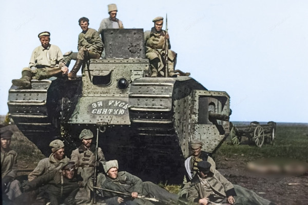 Английский танк Mark захваченный войнами 51-й стрелковой дивизии под Каховкой 14 октября 1920 года.