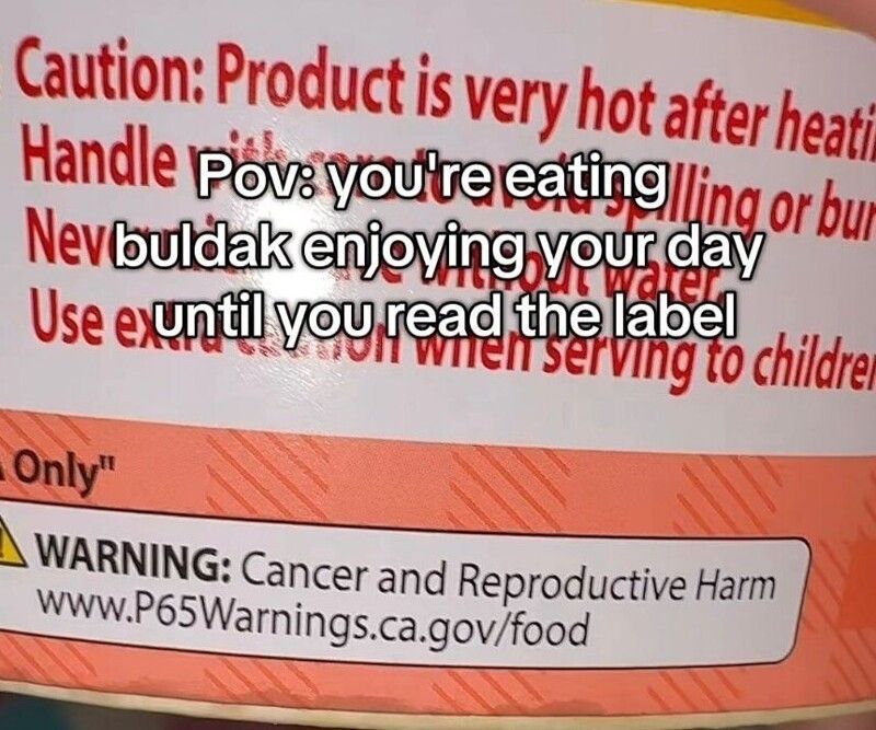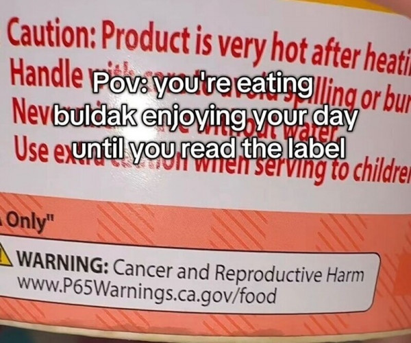 Всё началось с одного блогера, который купил пачку Buldak в калифорнийском магазине. Он перевернул упаковку и прочитал страшную надпись. На обратной стороне упаковки мелким шрифтом указано, что продукт может вызывать рак и наносить вред репродуктивной системе. Видео с этой находкой быстро распространилось в Instagram* и TikTok. Миллионы людей просмотрели ролики и начали обсуждать, действительно ли любимая лапша стала опасной. Видео реальное, но есть один нюанс под названием Prop 65 - это закон Калифорнии от 1986 года, который требует предупреждать потребителей о любых (даже микроскопических) количествах веществ из списка из 900+ химикатов, потенциально вызывающих рак, врождённые дефекты или репродуктивный вред. Для Buldak причинами могут быть: