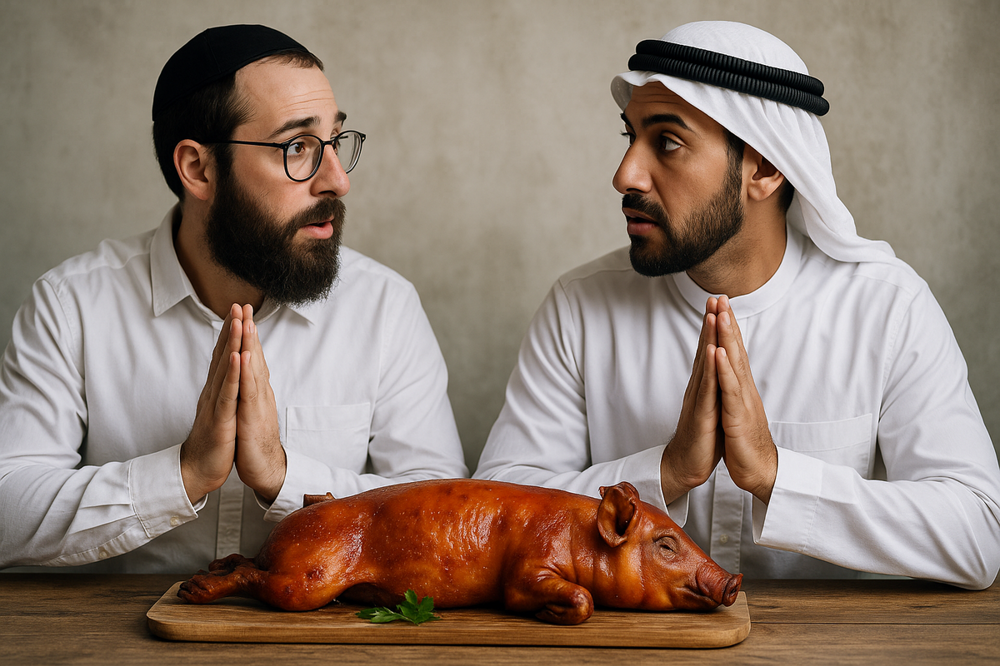 Американский антрополог Марвин Харрис в публикации Cows, Pigs, Wars, and Witches ("Коровы, свиньи, войны и ведьмы") выдвинул смелую гипотезу: это не Бог запретил свинину - это экономика замаскировалась под религию.