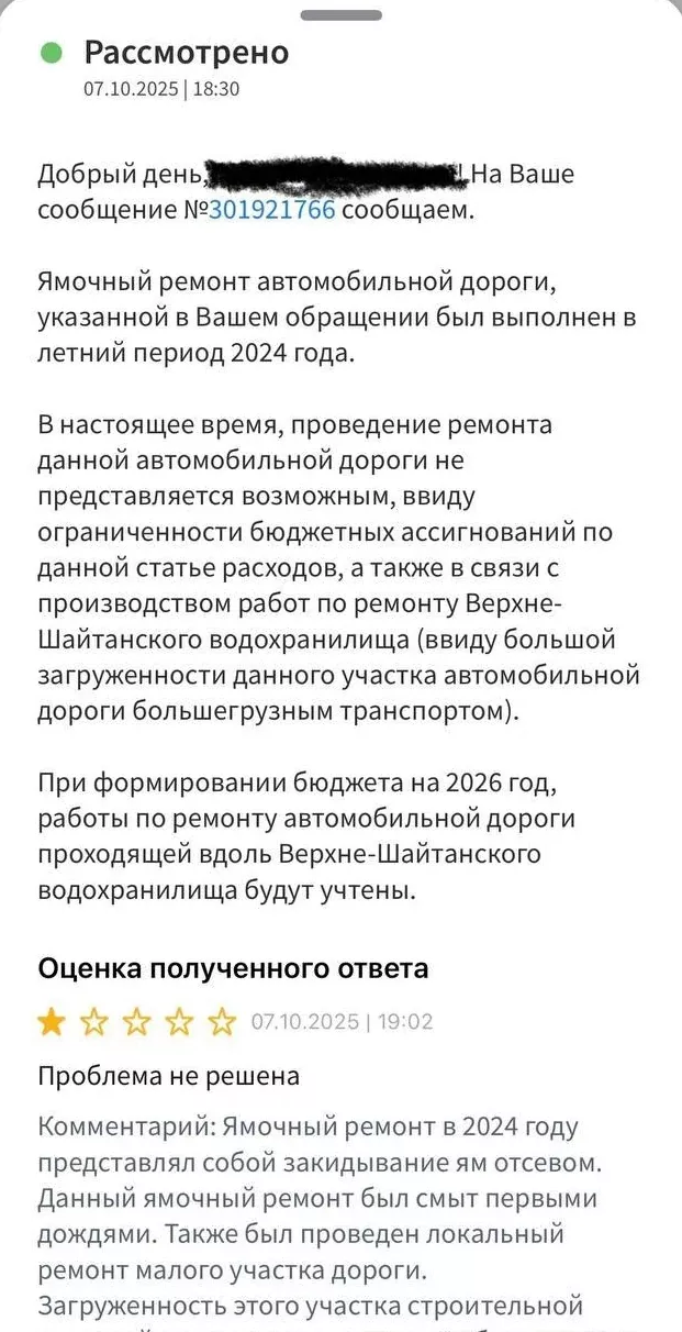 После неоднократных обращений и переносов сроков ремонта инициативная группа собрала средства, арендовала технику и закупила материалы, а для безопасности приобрела яркие жилеты.Работы стартовали утром и продолжались до самого вечера - за несколько часов горожане восстановили дорожное покрытие и занялись отсыпкой обочин. Ранее на этом участке водителям приходилось сбавлять скорость, чтобы не повредить автомобили, а попытки властей решить вопрос ограничивались временными мерами, которые не выдерживали даже первого дождя. Ремонта первоуральцы ждали с 2022 года, а в 2024 году был проведён ямочный ремонт, который давно пришёл в негодность.