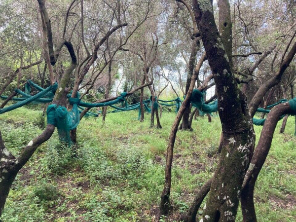 Почти что уверен, что они нужны для того, чтобы в них падали фрукты с деревьев. Просто сейчас они свёрнуты, потому что фруктов нет.