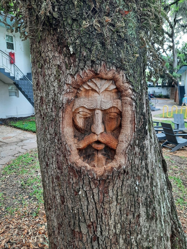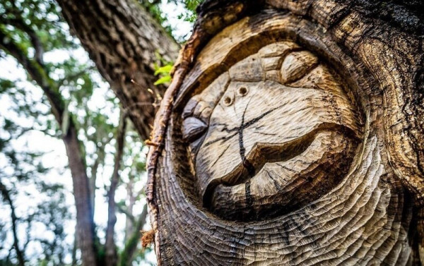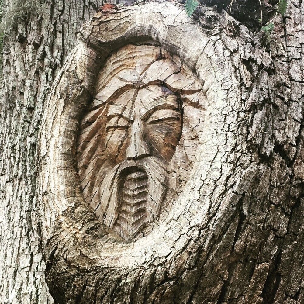 Хотя эти резные изображения могут показаться древним источником лесной магии, они были созданы местным художником Кейтом Дженнингсом, который утверждает, что лики отражают его личную связь с деревьями. Каждый отдельный дуб влияет на уникальность произведения искусства.
