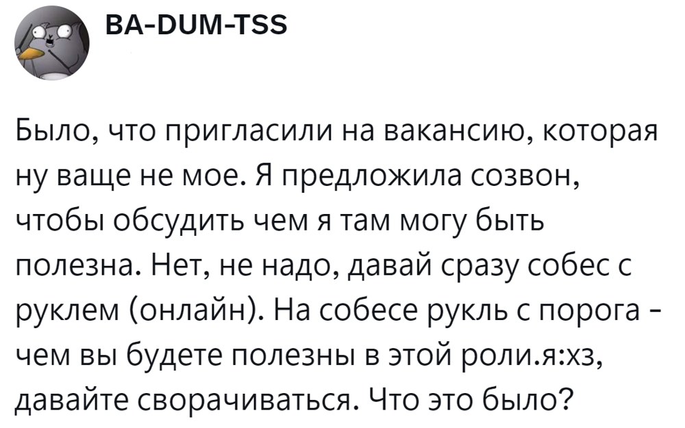 Собес для «посмотреть»: пользователи пытаются разобраться, зачем эйчары зря тратят время соискателей